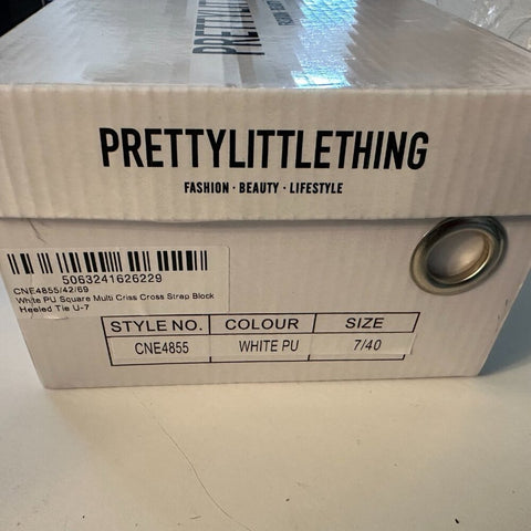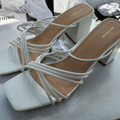 NIB Pretty Little Thing - White Square Toe Strappy Block Heeled Sandals